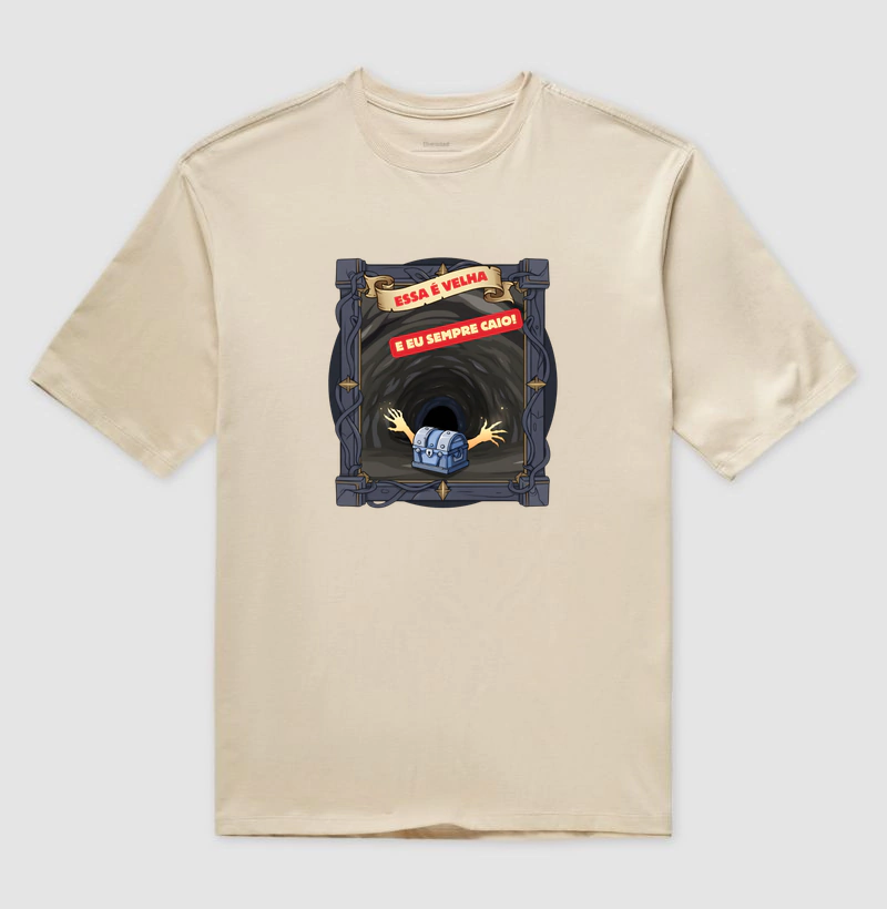 Regra nº 1 da dungeon: bata em todos os baús. Regra nº 2: esqueça a regra nº 1, seja movido pela ganância e vire almoço de Mímico. Essa peça é um atestado de trouxa (com muito orgulho) para quem vê um item brilhando e simplesmente não resiste. A gente sabe que a armadilha é velha. A gente sabe o que tem ali. E a gente abre mesmo assim. Feita em 100% algodão premium, que é pra pelo menos morrer de forma confortável. Garante a sua e pare de confiar em baús suspeitos.
