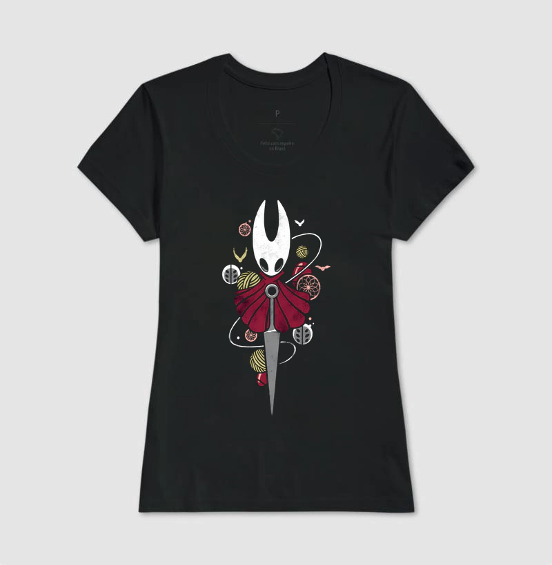 Inspirada na icônica Hornet de Hollow Knight, esta estampa combina força, elegância e mistério em uma composição vibrante. A guerreira empunha sua agulha com imponência, cercada por elementos que remetem ao universo do jogo — uma peça única para verdadeiros fãs de Hallownest.
