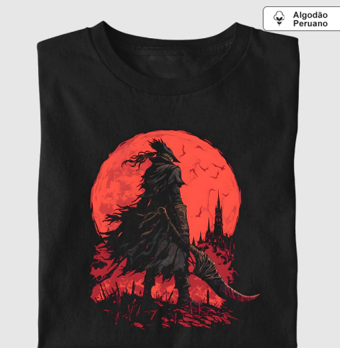 A Camiseta Lua Sangrenta traz a figura de um caçador de monstros sob a luz intensa da lua vermelha, em um design inspirado no universo Souls. Sendo 100% algodão, a Camiseta Premium oferece resistência, toque macio e sedoso, durabilidade e muito conforto. A estampa é aplicada com a tecnologia DTG, garantindo alta definição, cores vibrantes e resistência ao tempo. Com modelagem clássica e toque macio, é perfeita para quem busca um visual marcante e autêntico. Vista a essência de um verdadeiro caçador e leve a força da lua sangrenta para o seu estilo.