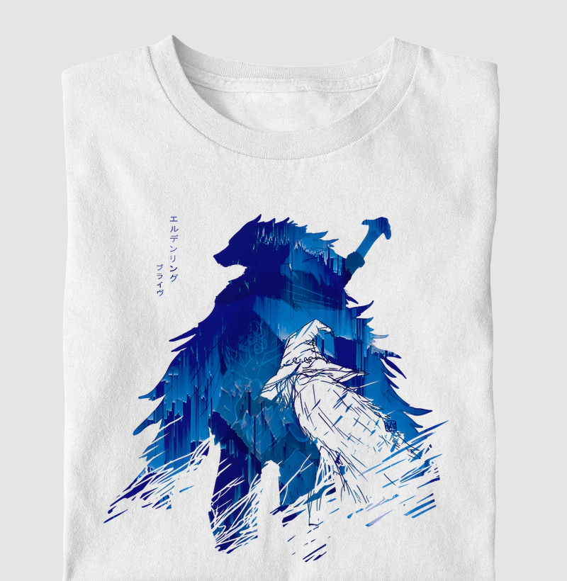 A Camiseta The Princess and The Wolf representa a conexão entre força e delicadeza, unindo a figura imponente de um guerreiro lobo à presença marcante de uma princesa que abandonou o próprio corpo. Inspirada no universo Souls, sua arte transmite mistério e profundidade em tons de azul intenso, evocando o simbolismo e a emoção das narrativas épicas.
